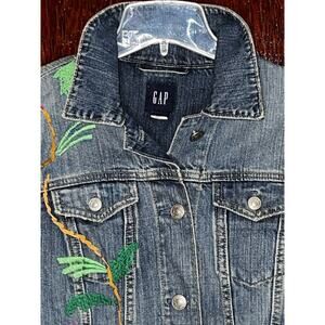GAP DENIM JACKET EMBROIDERED PEACOCK JEAN BLUE MEDIUM M