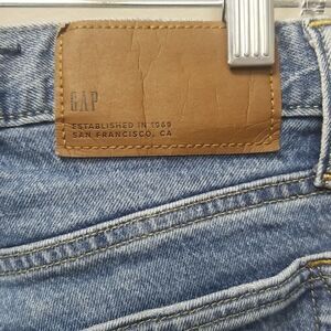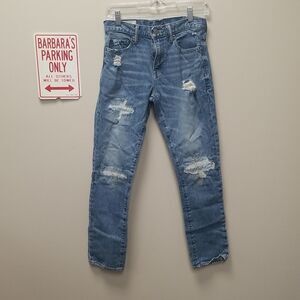 Distressed Gap jeans . Slimwith 5 pocket styling. Preowned. Nice Condition.
