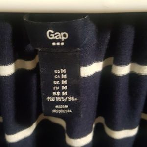 Navy with white stripes, tank style w stretchy waist. Worn one time, too big.