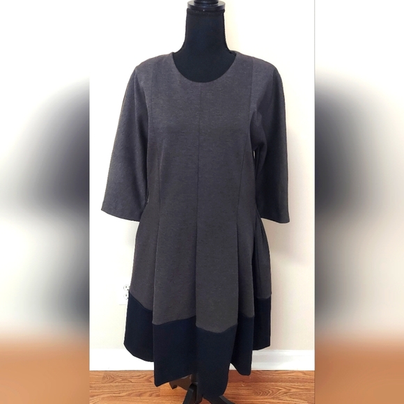 Grey and black Gap dress, gently used, not stains, smells, size 12, 3/4 sleeves.