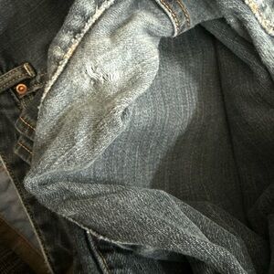 Does have some damage!!! See next to last photo where there is some fraying of the fabric at the inner thighs. Selling as is for cheap with free shipping Smoke free home. Size 30/comparable to size 10.