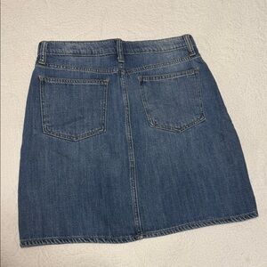 Stylish denim mini skirt. Features classic design with front pockets and button closure. Ideal for casual wear.