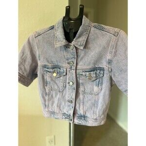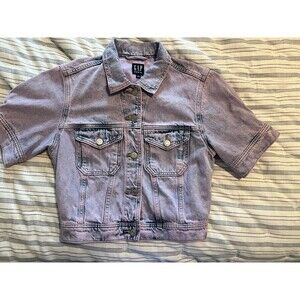 GAP Denim Cropped Jean Jacket in Pink Stone Wash Size XS