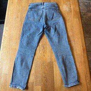 GAP High Rise Cigarette Jeans. Stock photo provided for fit and style reference. Kind of a lighter medium was with factory done rips and distressing. Size 6/28 regular. In great used condition! 98% cotton, 2% spandex/elastane.