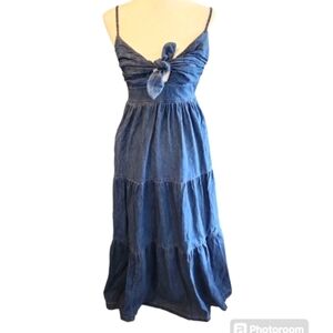 Tie-Front Tiered Denim Maxi Dress