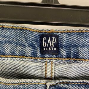 Gap Denim Crop Flare Jeans. Light wash distressed jeans. Hidden button fly, five-pocket styling.