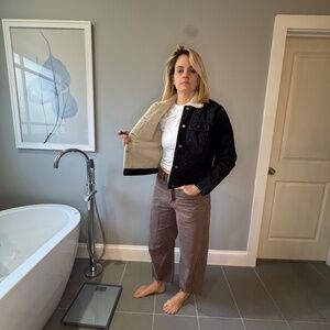 Classic cold-weather staple. This GAP Denim jacket features a black washed denim exterior with a super-soft sherpa lining throughout the body and collar. Warm, structured, and easy to style — great with tees, sweaters, or layered for winter.