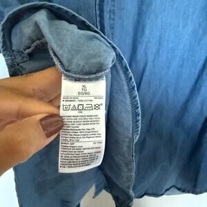 GAP Denim Shirt Womens XL Chambray Button Up Short Sleeve Cotton Preppy Western