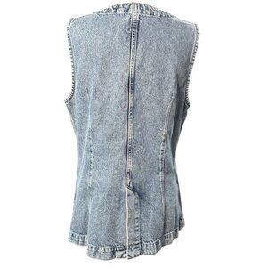 This medium-sized denim vest by Gap combines timeless style with practicality. Featuring a button-front closure and functional pockets, it’s a versatile wardrobe staple.