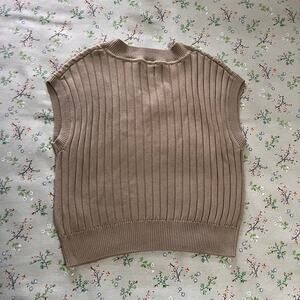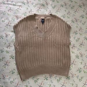 GAP Dolman Ribbed Sweater Vest Brown Small V Neck Cotton Knit Academia Office