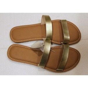 GAP Double Strap Flat Light Metallic Pale Gold Faux Leather Slides Sz 8 Sandal