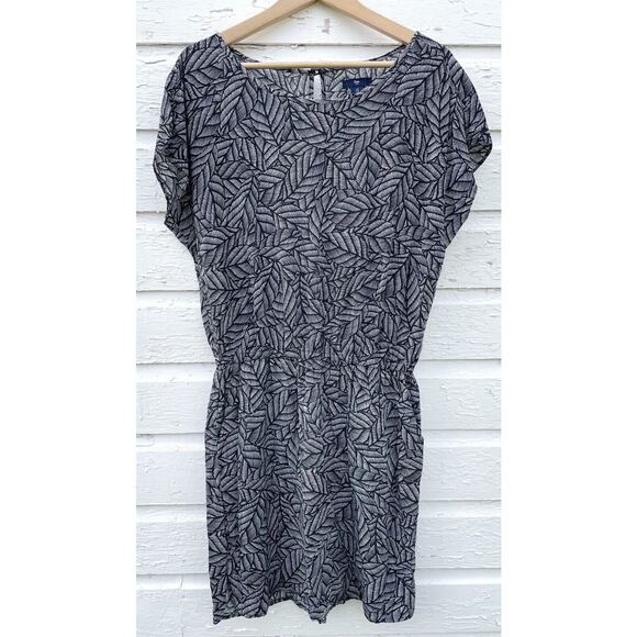 GAP Dress Size S Black Leaf Pattern Short Sleeved Bloused Waist Minimalist