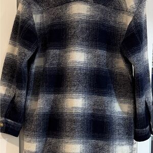 Navy jand white shacket made with recycled polyester. Sustainable and stylish. Like new. Perfect for the upcoming fall season.