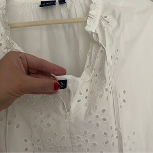GAP Eyelet Mini Dress In Off White Ruffle Long Sleeve Slip