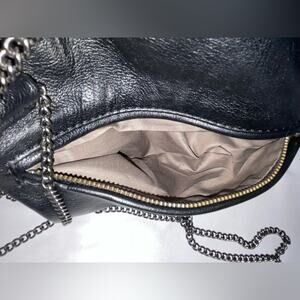 GAP FAUX BLACK LEATHER BOW EXPANDABLE MAGNETIC CLUTCH PURSE CHAIN STRAP