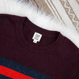 GAP FOR GOOD MAINSTAY SWEATER MENS SZ M BURGUNDY STRIPE CREWNECK CLASSIC