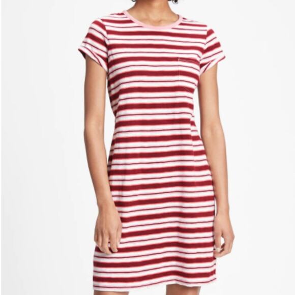 GAP Factory Burgundy Pink Stripe Pocket T-Shirt Dress