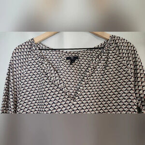 GAP Factory Womens Preppy Popover Top Size S Pink Navy Floral Flowy V-Neck