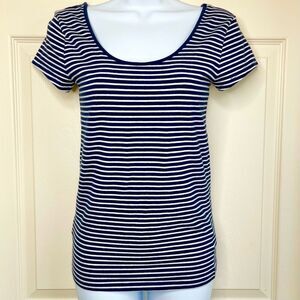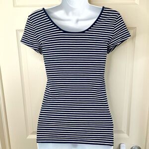 GAP Factory Fitted Stretch Scoop Short Sleeve Tee (Navy/White Stripe) - Small