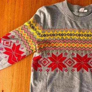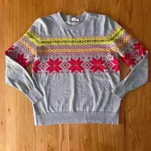 GAP Fair Isle Snowflake Gray Crewneck Sweater