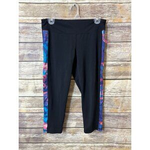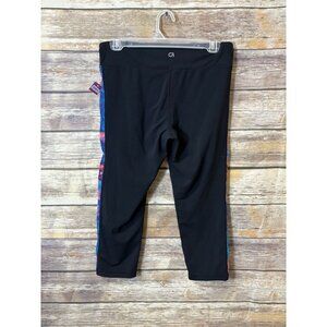 GAP Fit Capri Leggings Floral Fade Leg Stripe Black Blue Stretch M Medium