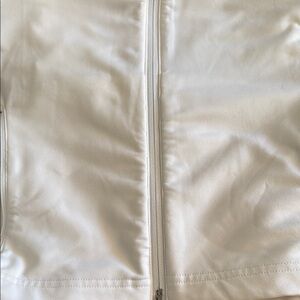 Stylish off-white utility jacket. Features a sleek full-zip design. Ideal for versatile wear.
