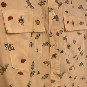 GAP Fitted Boyfriend Shirt Button Down Peach Colored with Bugs Size XS