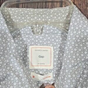 GAP Floral Button Down Shirt Light Gray Cotton Long Sleeve Lightweight Men M NWT