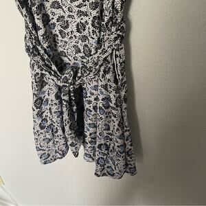 GAP Flowy Floral Mini Dress with Waist Tie Blue & Black