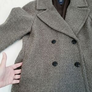 GAP Fuzzy Double Breasted Pea Coat Brown Taupe Textured Jacket