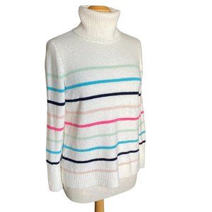 GAP Fuzzy Turtleneck Multi-Colored Stripes Ski Bum Coastal Knit Sweater-M