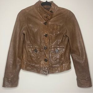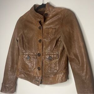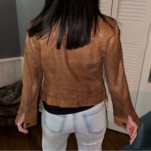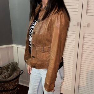 GAP Genuine Leather Tan Warm Brown Bikercore Fall Pockets Jacket