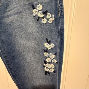 Chic blue skinny jeans with delicate floral accents. Ideal for casual outings. Take a look at my other items to bundle and save!