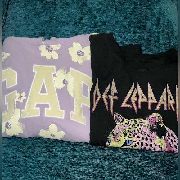 GAP- Girls Bundle Flowers Hoodie and Def Leppard Long Sleeve Top Size XXL 14/16