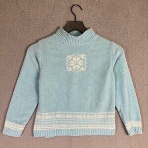 GAP Girls Blue Snowflake Sweater Size M Knit Winter Pullover Warm Cozy Cute