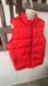 Stylish orange puffer vest with a front zipper. Perfect for layering.