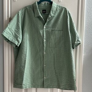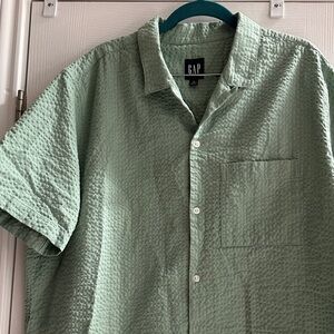 GAP Graphite Green Seersucker Casual Button Short Sleeve Vacay Lightweight Beach