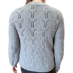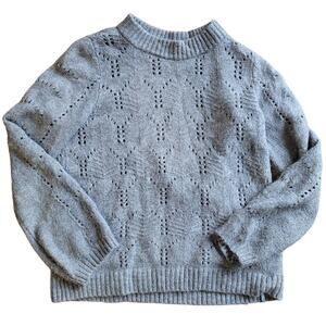 GAP Gray Eyelet Knit Sweater M Mock Neck Textured Soft Fuzzy Minimalist Quietlux