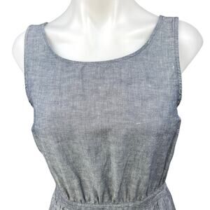 GAP Gray Linen Sleeveless Open Back Jean Chambray Denim Blouson Mini Dress Sz S
