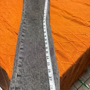 These GAP jeans feature a classic straight leg design in a stylish gray color, offering a timeless look with a vintage-inspired wash. The denim is rigid, providing a structured fit that tapers slightly towards the ankle, perfect for a versatile and chic appearance.
