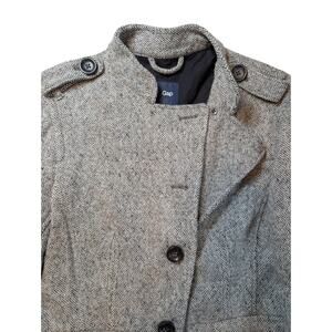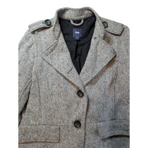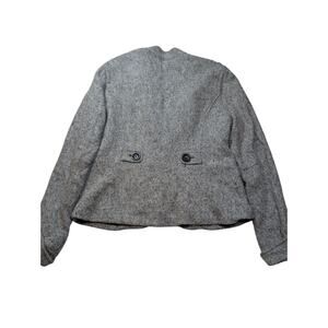 GAP Gray Tweed Juniors Sz L Blazer Jacket Pink Contrast Stitch 4 Big Button