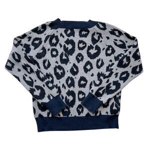GAP Gray and Navy Leopard Print Crew Neck Sweater Size Large