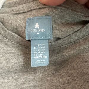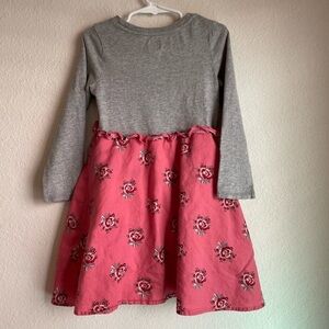 This casual dress from GAP features a stylish A-line silhouette with a soft gray knit top and a playful pink skirt. The long sleeves and crew neck add a classic touch, while the whimsical black designs on the pink fabric bring a fun element to the look. Perfect for a relaxed day out, this dress combines comfort and style effortlessly.