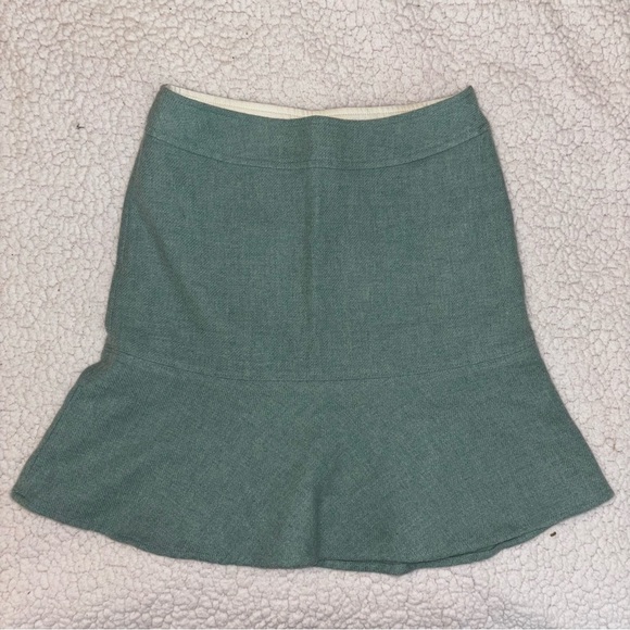 Beautiful green trumpet skirt made from 99% wool with a polyester lining. Invisible zipper with clasp on the side. Quality material.