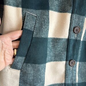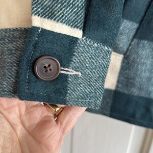 Forest green/cream plaid unlined Shacket with lots of front pockets and a button front with button cuffs. Soft touch. Great for layering. In excellent condition. Worn once.