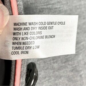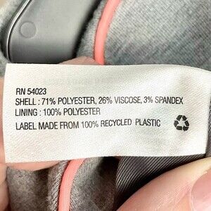 Fully lined, long sleeve stretch knit grey blazer with neon peach piping trim