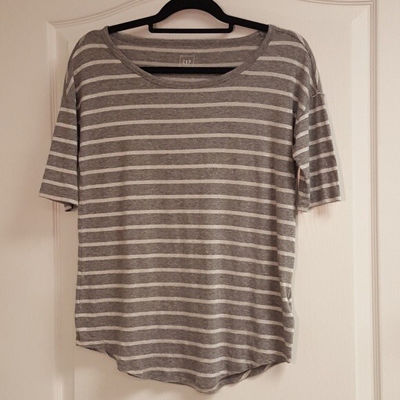 Grey and silver metallic striped wide neck tee by GAP. size Small