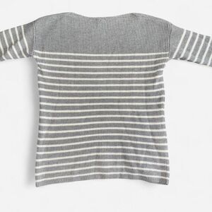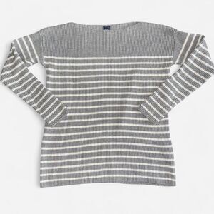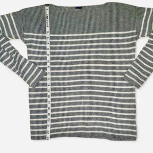 Grey and white striped sweater with a boat neck from Gap in a size WOMENS MEDIUM. Thick knit material. Like-new condition.