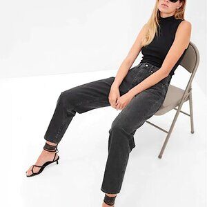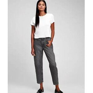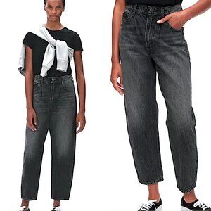 GAP High Rise Barrel Leg Rigid Denim Jeans in Deep Gray