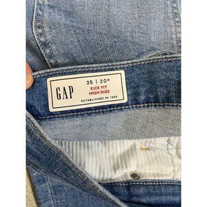Brand new with tags GAP Kick Fit High-Rise Jeans in a versatile light wash. Features a flattering high-rise waist, subtle distressing at the knee, modern kick flare leg, and raw-cut ankle hem. Size 35. Soft stretch denim with great structure. These are sold out online and perfect for everyday wear, casual outfits, and year-round styling.